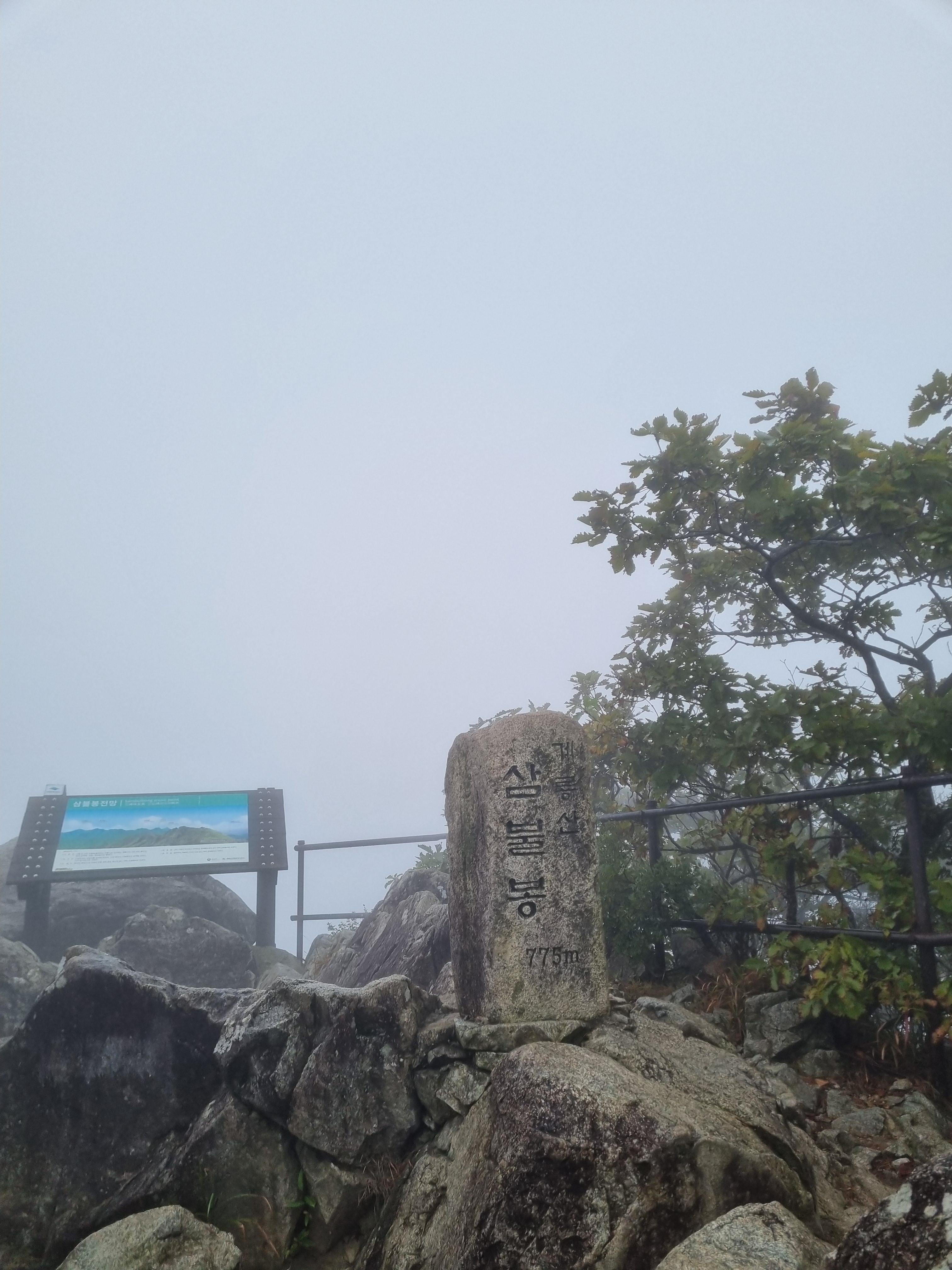 삼불봉 가는길은 앞이 뻥 뚫려있었지만 온통 안개로 가득차 풍경을 전혀 볼 수 없었다. 분명히 절경이 눈앞에 있을거란건 상상이 되는데.. 정말 아쉬웠다.